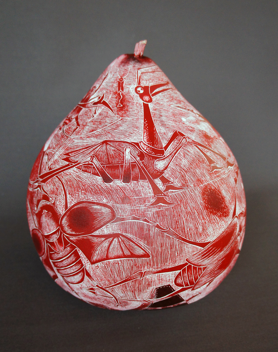 Óleo policromado sobre bule intervenido 86 circ. x 30 cm
