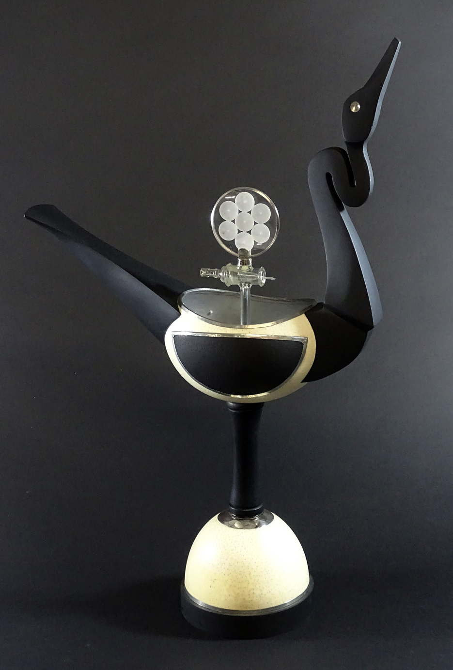 Huevo de avestruz, madera y plata ley .925 55.5 x 36.5 x 14 cm